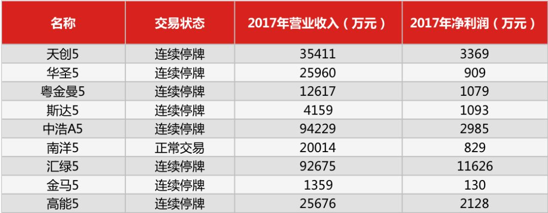 / 01 / 理论上只需185天,老三板公司有上市"绿色"通道 从老三板回归A股怀抱,并不需要像走正常的IPO排队程序,理论上,经交易所同意,仅185天就可以等着安排股票上市。 大部分公司即使退市,但壳价值依然在。这也成为老三板公司股价被爆炒的主要原因。 2017年7月26日,中科盛创(834634.OC)与从深交所退市的猴王1(400045)签署《合作协议》,希望通过借老三板公司壳的方式登陆A股,今年2月已完成上述资产重组。 本次申请重新上市的创智5,便是通过资产重组的方式使自己达到重新上市的标准。 老三板公司回归A股,一般的流程是,交易所收到重新上市申请文件后,会在5个交易日内作出是否受理其申请的决定。 主动退市公司申请重新上市的,自受理申请之日起的30个交易日内,作出是否同意其股票重新上市的决定。 强制退市公司申请重新上市的,自受理申请之日起的60个交易日内(差不多是3个月时间),作出是否同意其股票重新上市的决定。 创业板不接受公司股票重新上市的申请。 退市公司的重新上市申请获同意后,需要在三个月内办完公司股份的重新确认、登记、托管等相关手续。这之后,交易所会安排股票上市交易。 上市申请流程图 大部分公司是被强制退市,因此这些公司完成所有的程序,理论上需要185天。 当然,如果中途反馈需要补充材料的话,实际时间会更长。 / 02 / 重新上市门槛,最近三年盈利且净利润累计达3000万即可? 老三板公司申请重新上市有什么要求?读懂君看到了2012年和2014年两个版本的《退市公司重新上市实施办法》。 2014年11月16日前已退市并于2017年11月16日前申请重新上市的公司,适用2012年较低门槛的版本,在这之后申请的,适用2014年较高门槛的版本。 根据2012年的办法: 公司仅需最近两年净利润为正且累计超过2000万元,最近一年净资产为正,以及具有持续经营能力且最近3年无重大违法行为即可。 创智5早在2106年6月30日提交申请材料,同年8月30日申请中止审核。申请时间较早,适用该版本。 根据2014年的办法: 最近3个会计年度净利润均为正数且累计超过人民币3000万元,净利润以扣除非经常性损益前后较低者为计算依据; 最近3个会计年度经营活动产生的现金流量净额累计超过人民币5000万元,或者最近3个会计年度营业收入累计超过人民币3亿元; 最近1个会计年度经审计的期末净资产为正值; 最近3年公司主营业务没有发生重大变化,董事、高级管理人员没有发生重大变化,实际控制人没有发生变更。 长油5则适用于该版本。 这两家公司重新上市的申请均为两个交易所的首例,这不仅关系到两家公司、十几万投资者的命运,还关系到监管对于重新上市的态度及关注要点,可以说是风向标。 / 03 / 只有17%的老三板股票符合重新上市财务指标,躁动也要注意风险 此次重启上市的长油5是老三板的盈利王,长油5也被称为长航油运,因2010年至2012 年连续三年亏损, 2014年6月5日被终止上市。剥离亏损业务后,经营转状况逐渐好转。 2017年长油5营收达37.29亿元,扣非后净利润达3.80亿元。远超重新上市的标准。 而大部分老三板公司自身的业绩不达标。截至目前,59家老三板公司,只有40家披露了2107年年报。 根据年报,21家公司实现盈利(以扣非后净利润孰低原则来看),除长油5、创智5外,仅9家公司符合重新上市的财务指标(2014年版本),且只有1家目前为正常交易。 可见,与长油5一样,靠实力,即财务指标符合重新上市标准的公司并不多。 9家符合财务标准的老三板公司 对于业绩不达标的退市公司而言,重新上市最大的可能是通过资产重组,也就是被借壳,创智5走的就是重组路线。 2014年,多次冲击A股失败的天珑移动斥资42亿元将资产装入创智5,随后创智5主营业务改变为手机制造以及移动互联网相关业务,业绩突飞猛进。2013年营收为零,2017年,净利润已经达到1.23亿元。 实际上,多家老三板公司也在筹划重组事宜,华圣5(400039)、五环1(400020)、大通5(400029)、中浩A5(400011)等公司在推进重整、重组计划。虽然尚未明说要回归A股,但眼下的动作无疑表露它们的心思。 当然,各位投资者,压宝也要谨慎! / 04 / 老三板不同于新三板,这些知识你得了解 三板市场起源于2001年的"股权代办转让系统",最初是为了承接从STAQ、NET法人股市场转过来的所谓"两网股",以及因各种原因退市的上市公司而建立的,目前共63只股票。 投资者开设老三板交易账户,没有资产和交易经验要求,可以说是零门槛,只要到证券公司办理一下手续即可。 老三板市场的交易制度是以竞价的方式进行集中配对成交,类似于新三板基础层的竞价交易,盘中可报价,每天尾盘只撮合一次,有5%的涨跌停限制。 根据每周可交易的天数,老三板公司被分为3类:每周可交易5次、3次和1次,股票名称结尾的1、3、5分别代表以上的每周交易天数类型。 每周可交易5次的股票周一至周五每天撮合一次。这类公司,要求较高,需规范履行信息披露义务、股东权益或净利润为正、最近年度财报未被注册会计师出具否定意见或无法表示意见。 每周交易3次的公司在周一、周三、周五每天撮合一次。这类公司,股东权益和净利润均为负值,或最近年度财报被注册会计师出具否定意见或无法表示意见。 每周只能转让1次的公司只在周五撮合一次。这类公司,未与推荐公司股票挂牌的主办券商签订《推荐恢复上市、股票转让协议书》,或不履行基本信息披露义
