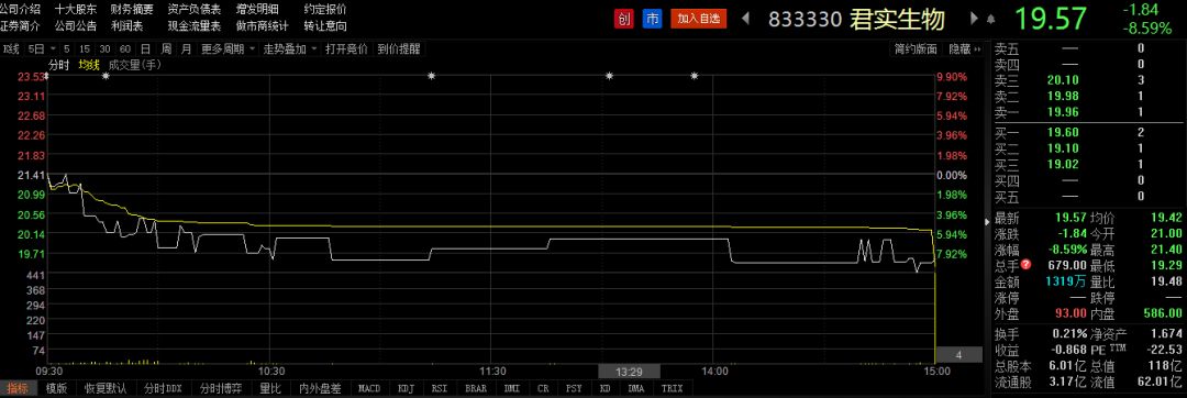 君实生物两地挂牌同时交易,市场表现却大相径庭。与港股受追捧形成反差的是,君实生物在新三板的股价收盘大跌8.59%,如今新三板股价较港股打9.3折。这是抄底的机会吗?